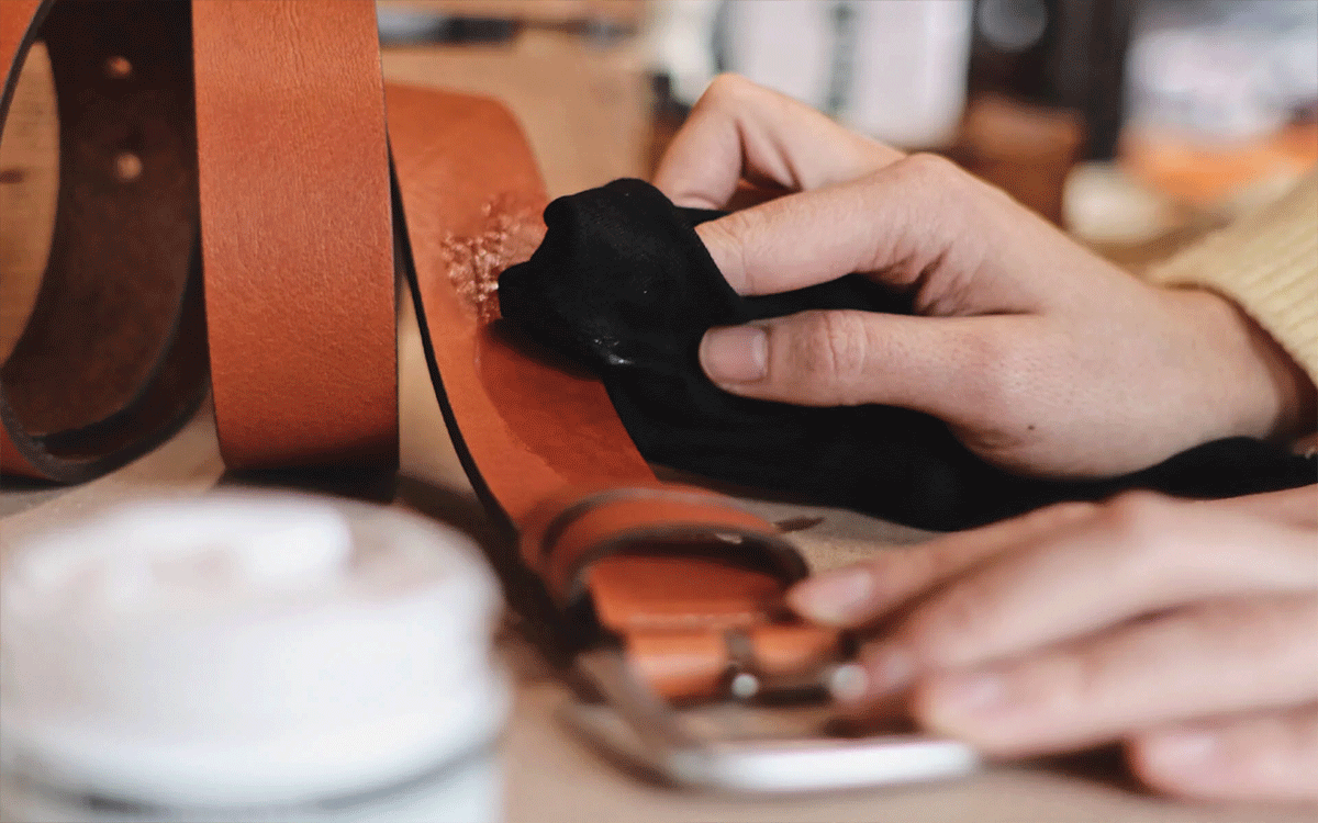 Aplicamos una mezcla de aceites naturales y cera de abeja que nutren la piel y realza su durabilidad.